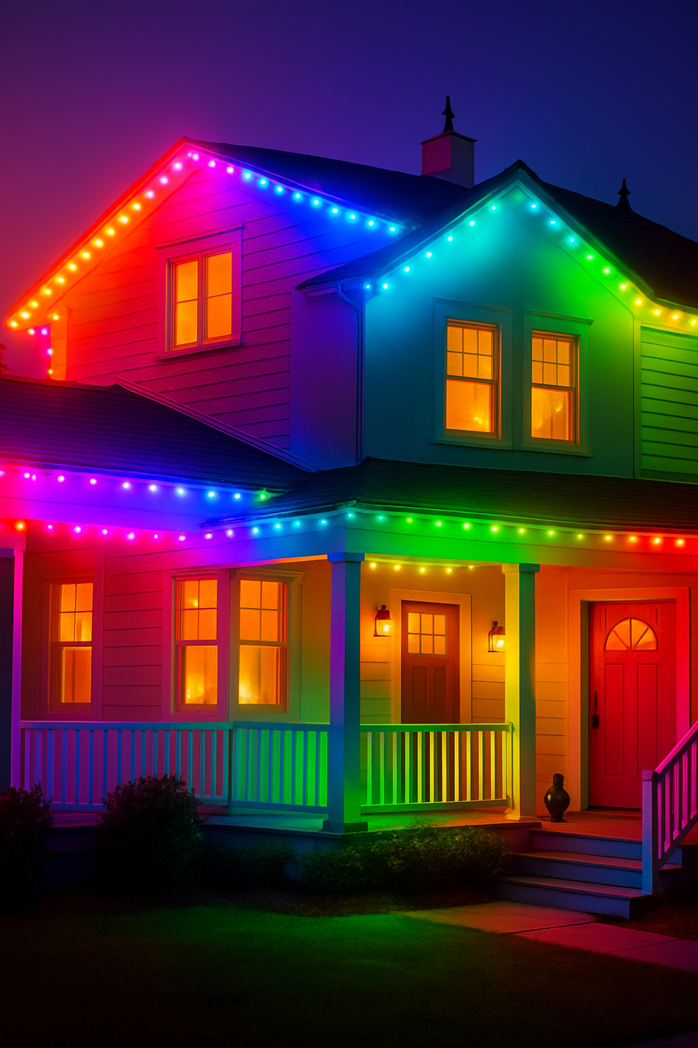 La instalación queda discreta, con luces súper pequeñas que se camuflan con la fachada. En el día casi no se notan, y en la noche tu casa se ve moderna y elegante (no solo en Navidad, sino en cualquier ocasión).